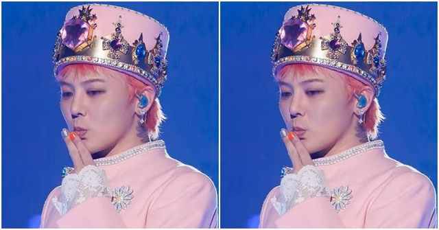 지드래곤은 지난달 23일 일본 오사카 교세라돔에서 열린 'MAMA 어워즈'에서 군복을 닮은 분홍 제복과 화려한 분홍색 모자와 반지를 착용하고 무대에 올랐다.
