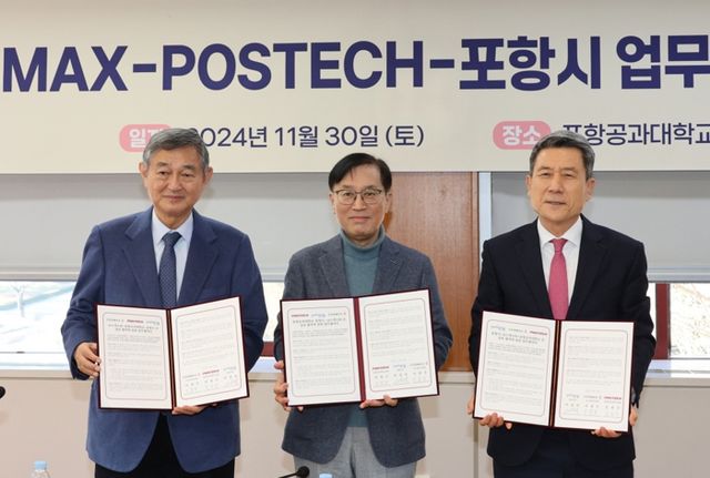 이날 협약식은 이강덕 포항시장, 이경수 코스맥스그룹 회장, 김성근 포항공과대학교 총장 등 산관학 관계자 20여 명이 참석한 가운데 진행됐다.