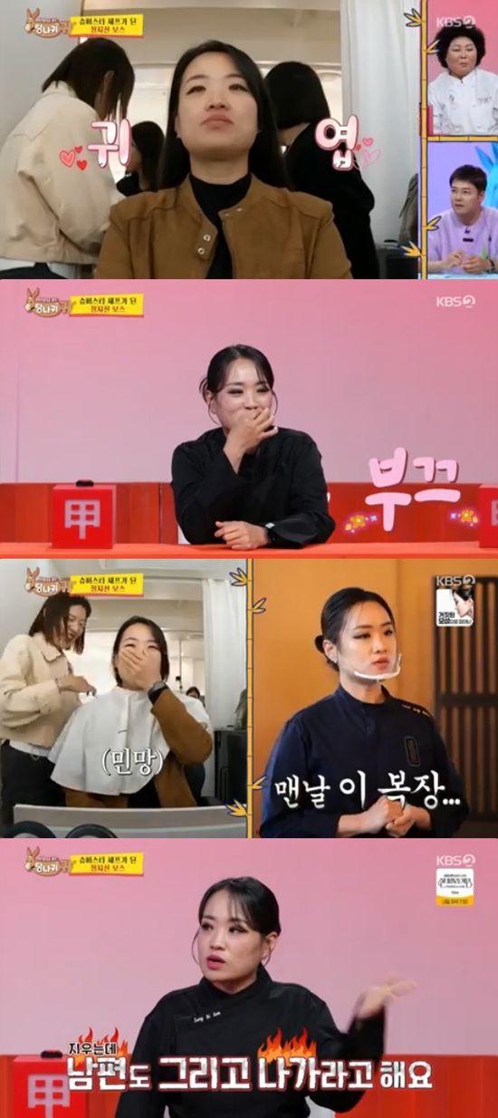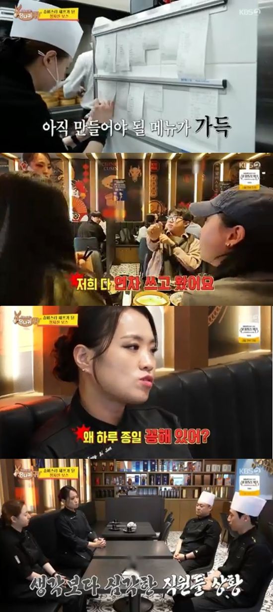 정지선은 브레이크 타임이 되자 직원들과의 자리에서 "왜 하루 종일 꽁해 있냐. 불만이 많은 것 같은데 불만 있어?"라고 물어봤다.