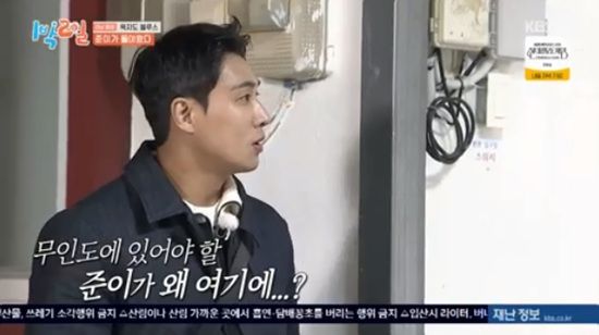 1일 방송된 KBS 2TV '1박 2일 시즌4'에서는 이준이 무인도에서 탈출하는 모습이 전파를 탔다.