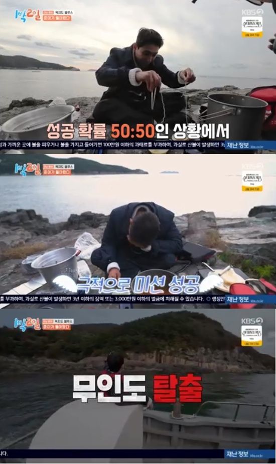 (엑스포츠뉴스 원민순 기자) 이준이 라면 면발 복불복 성공으로 무인도에서 탈출했다.