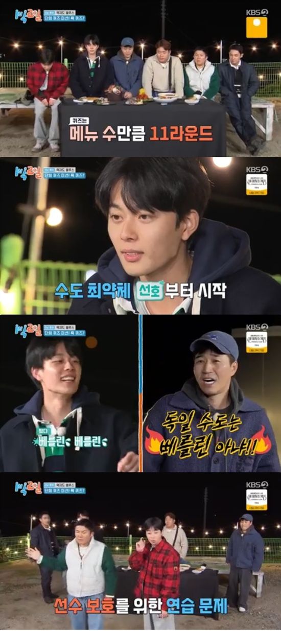 멤버들은 6대 광역시 맞히기에 성공하며 고등어조림을 확보했지만 이어 인물퀴즈에서 김종민이 박성훈을 못 맞히며 또 메뉴 하나를 반납했다.