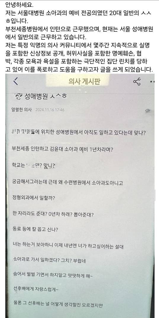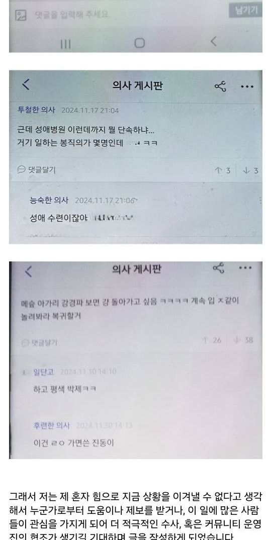 의사 커뮤니티에서 벌어지는 집단 린치를 폭로합니다..