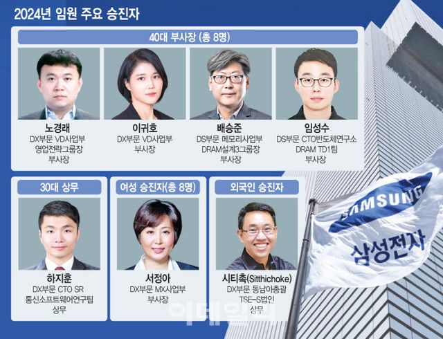 기술통을 적극 중용한 것도 관전 포인트다. 삼성전자는 미래 사업으로 점찍은 AI, 6G, 차세대 반도체 등 신기술 분야에서 성과주의 원칙 아래 검증된 인재 중심으로 세대교체를 추진할 방침이다. 이번 인사에선 30대 상무 1명과 40대 부사장 8명 등을 발탁하며 나이에 국한되지 않고 인재를 등용했다는 설명이다.