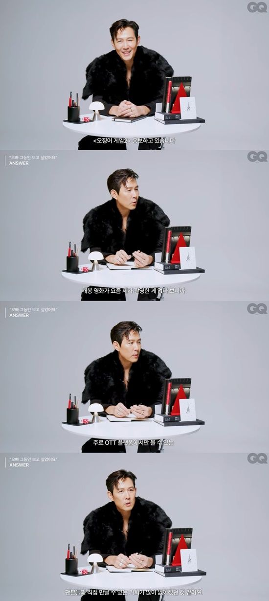 1일 남성 패션 매거진 GQ코리아 유튜브에는 '이정재 피셜, 2024년 도파민 터지는 문장 "오빠 그동안 보고 싶었어요"'라는 제목의 영상이 게재됐다.