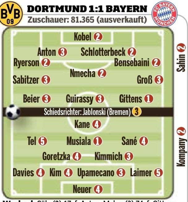 패배를 면하며 리그 선두 자리는 지켰다. 하지만 이날 도르트문트 상대로 다소 무기력한 경기를 보여주면서 많은 선수들이 혹평을 받았다.