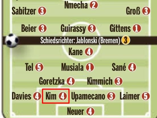 바이노기튼스에게 돌파를 허용해 선제골을 허용한 라이머는 최저 평점인 5를 받았다. 김민재에겐 라이머 다음으로 낮은 평점인 4를 줬다.