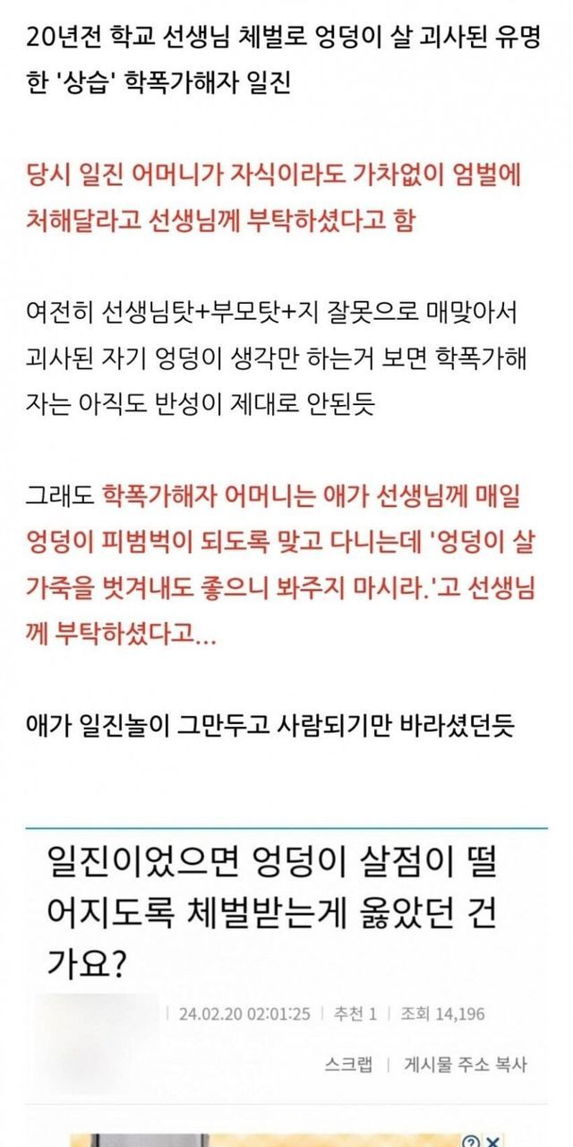 20년전 일진 어머니의 부탁