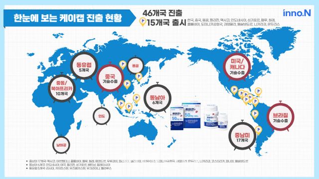 케이캡은 한국을 포함해 중국, 미국, 인도, 중남미 등 전세계 46개국에 진출했다. 진출 국가별 허가 및 출시 절차를 밟고 있는 가운데 현재까지 총 15개 국가에 출시됐다. 국내에서는 올해 1월부터 10월까지 1602억원의 원외처방실적을 기록했고, 4년 연속 국내 소화성 궤양용제 시장 1위를 차지하고 있다.