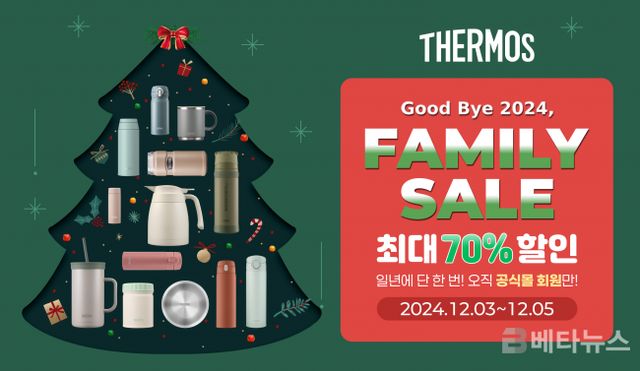 글로벌 보온병 브랜드 ‘써모스’가 연말을 맞아 온라인 공식몰에서 연중 최대 할인 행사인 ‘2024 패밀리 세일’ 기획전을 실시한다고 밝혔다.