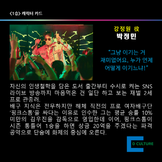 오는 4일 개봉하는 영화 <1승>을 재미있게 볼 수 있도록, 주요 캐릭터에 대한 카드 뉴스를 제작했다. <편집자 주>