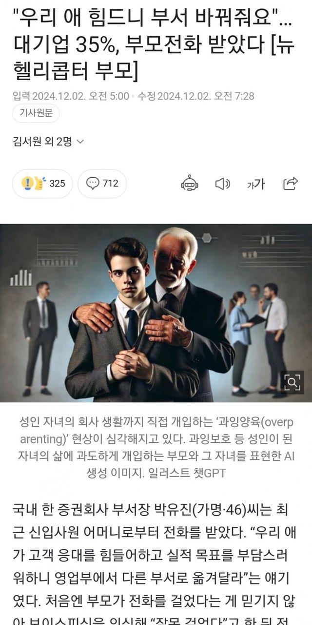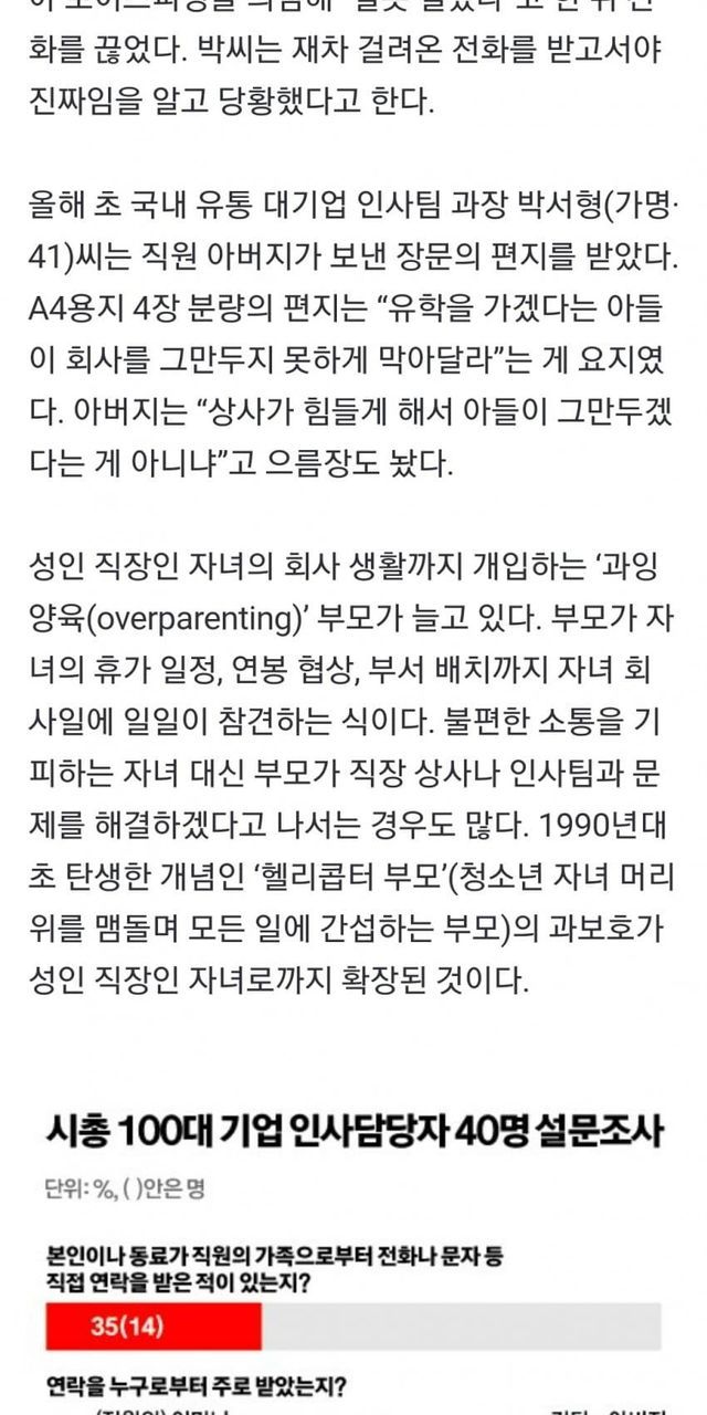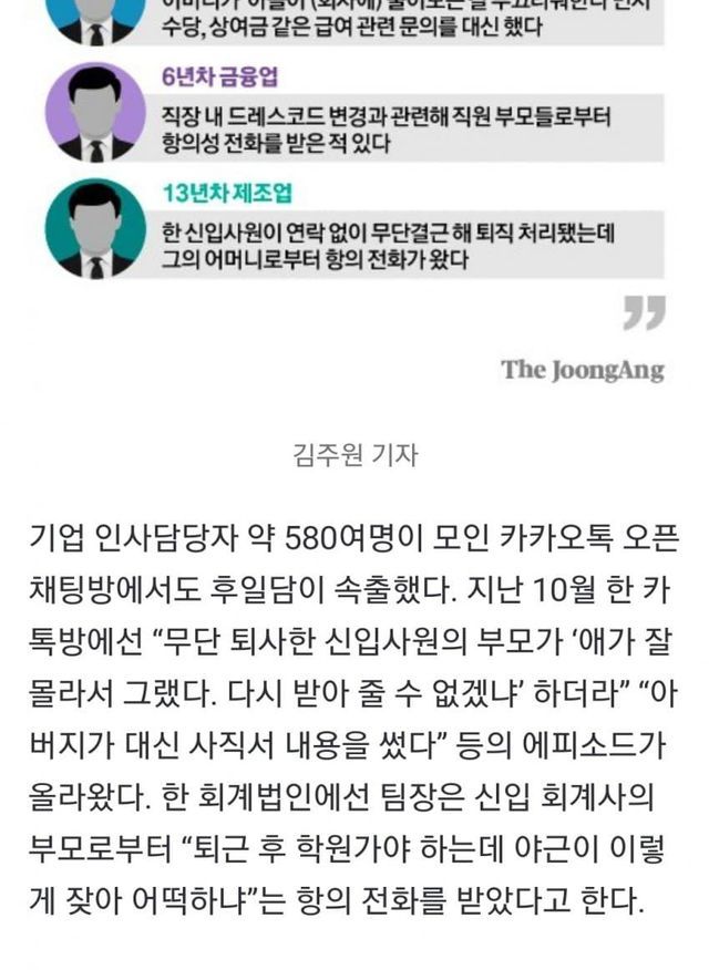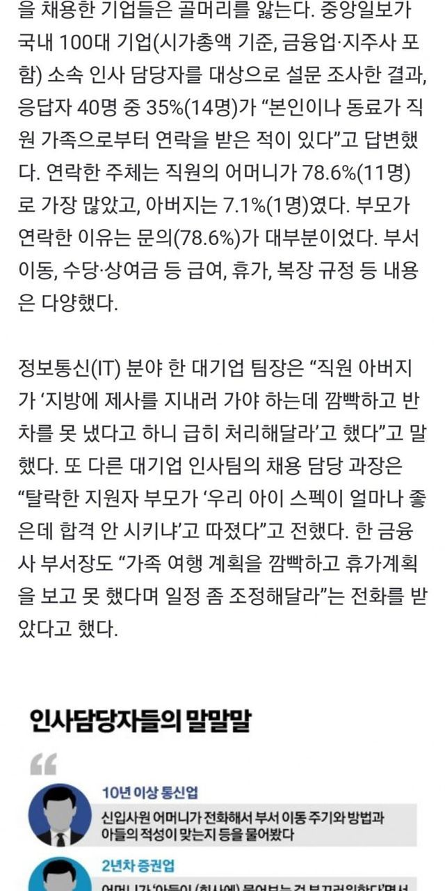 "우리 애 힘드니 부서 바꿔줘요" 대기업 35%, 부모전화 받았다