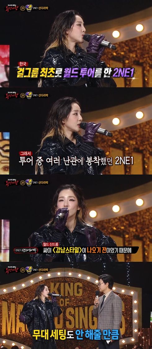 그런 이유로 산다라박은 '복면가왕'에 한풀이하러 나왔다"라고 출연 계기를 밝히며 웃음을 안겼다.