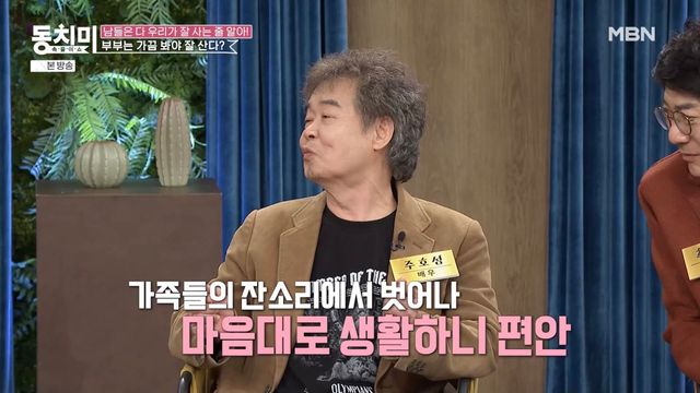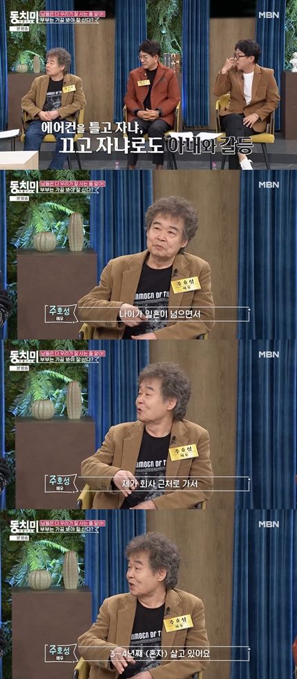 주호성은 "나이가 일흔이 넘으면서 내가 회사 근처에서 3~4년 이상을 (혼자) 살고 있다"라고 밝혔다. 그는 "얼마나 편안한지 모른다"라고 별거 소감을 전했다.