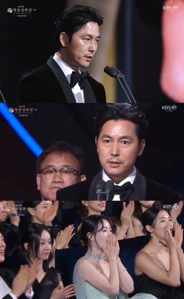 '최다관객상' 시상을 위해 시상자로 오른 정우성은, 출연한 영화 '서울의 봄'(감독 김성수)이 해당 상을 수상하면서 소감을 말하기 위해 마이크를 잡았다.