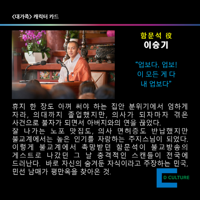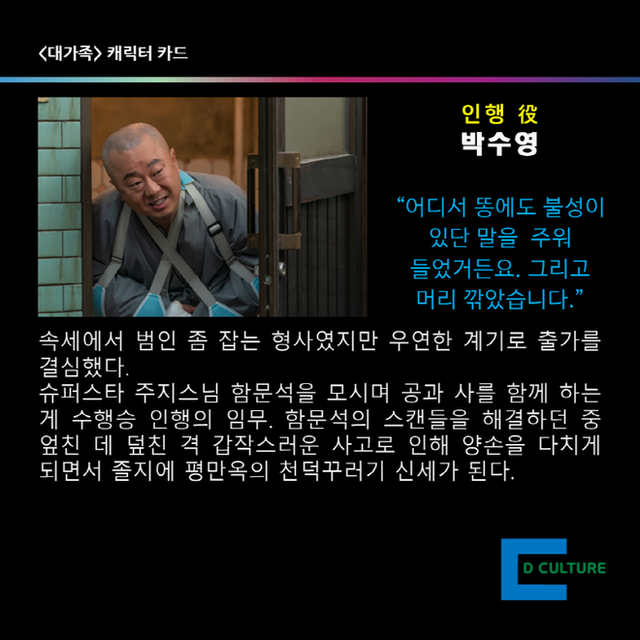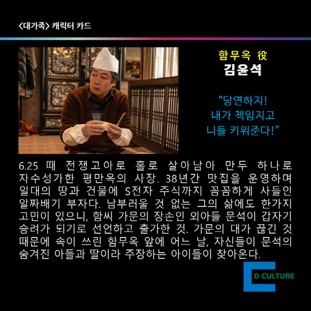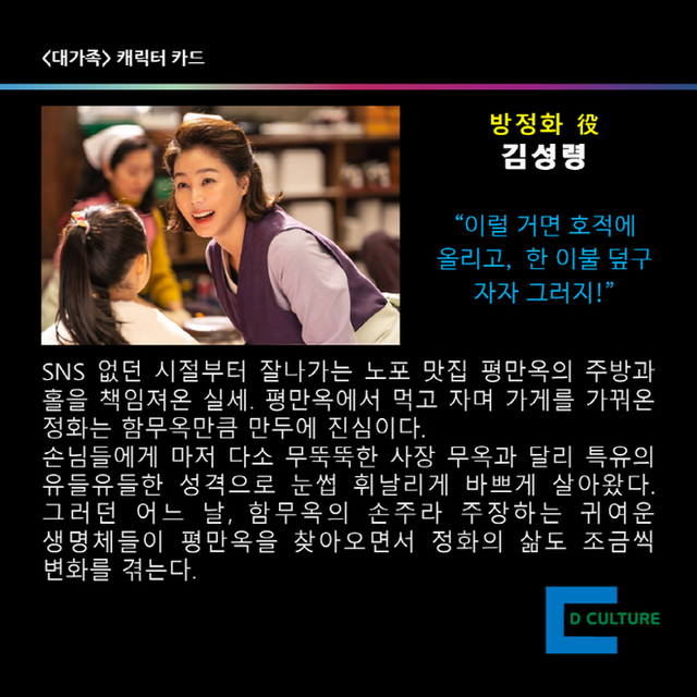 오는 11일 개봉하는 영화 <대가족>을 재미있게 볼 수 있도록, 주요 캐릭터에 대한 카드 뉴스를 제작했다. <편집자 주>