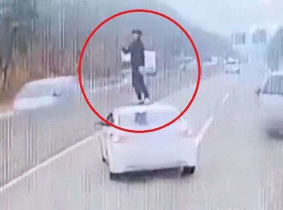 그는 다른 차량을 향해 돌멩이를 던지거나 정지한 승용차 위에 올라서고, 중앙분리대를 넘어가려고 하기도 했다.