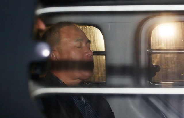 윤석열 대통령 부부 공천 개입 의혹의 핵심 인물인 명태균 씨가 11월 14일 오후 공천을 대가로 정치자금을 주고받은 혐의(정치자금법 위반)로 경남 창원시 성산구 창원지방법원에서 열린 구속 전 피의자 심문(영장실질심사)을 마친 후 대기 장소인 창원교도소로 가기 위해 호송차에 탑승하고 있다. / 뉴스1