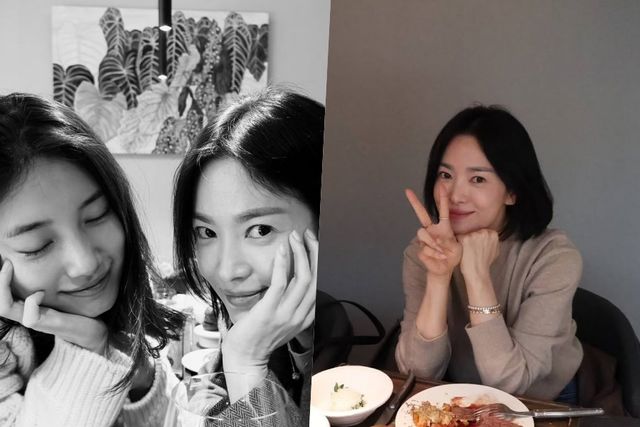 공개된 사진 속 수지는 최근 생일을 맞은 송혜교와 함께 식사를 즐기고 있는 모습이다. 편안한 모습으로 둘만의 시간을 보내고 있는 수지와 송혜교는 카메라를 향해 장난스러운 포즈를 취하며 남다른 우정을 드러냈다. 수수한 모습에도 남다른 미모를 뽐내는 두 사람의 비주얼 케미가 보는 이를 매료한다.