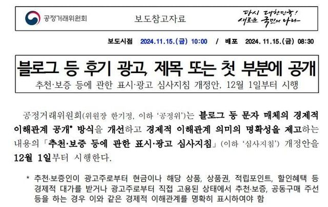 12월부터는 제목이나 본문 제일 위에 광고 표시 안 하면 공정위가 때찌한대