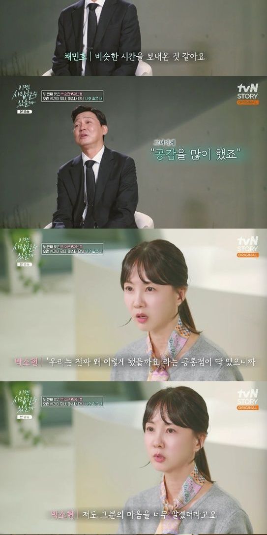 박소현도 "이런 건 40대에 만났다면 우리가 얘기를 나누지 않고 공감도 못 할 포인트인데 같은 길을 걸어와서 '우리는 진짜 왜 이렇게 됐을까요'라는 공통점이 있어 그분의 마음을 너무 알겠더라. 그런 포인트는 좋았던 것 같다"고 말했다.