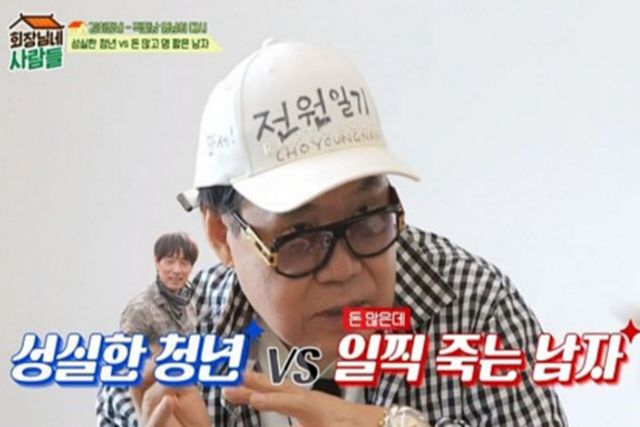 이에 조영남은 "네가 판단해라"라며 "성실한 청년이냐, 돈 많은데 일찍 죽는 사람이냐"라고 말하자 김수미는 "왜 하나를 속물로 만드냐"라며 "조영남은 100살까지 살 거 같다"라고 말해 현장을 웃음바다로 만들었다.