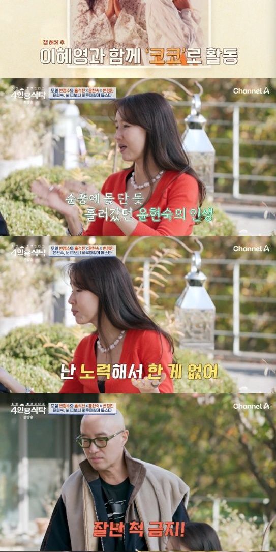 윤현숙은 "난 사실 떡볶이가 너무 먹고 싶었다. 분식을 못 먹는다. 당뇨가 생겼다"며 토로했다.