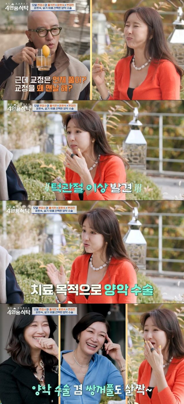이날 홍석천은 윤현숙에게 교정을 계속해서 하고 있는 이유를 물었다. 윤현숙은 “내 옛날 사진을 봐라. 입이 앞으로 돌출됐고 교합이 잘 안돼서 매일 위염을 달고 살았다”고 털어놨다.