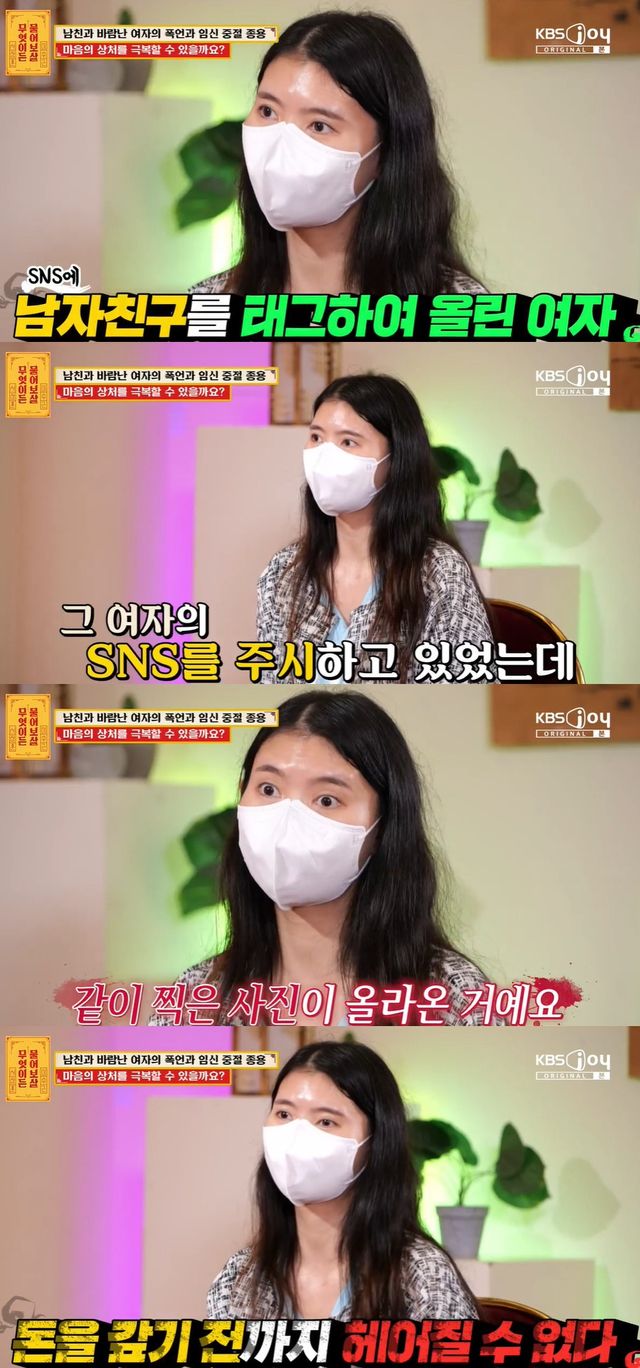 (엑스포츠뉴스 이유림 기자) 남자친구가 바람나고 임신 중절을 하게 되면서 내연녀에 폭언을 듣게 된 사연자가 등장해 충격을 자아냈다.