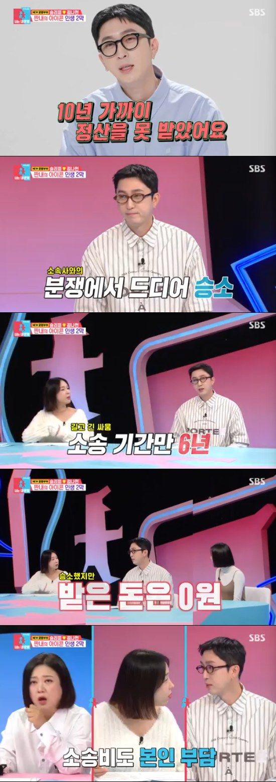 그러면서 슬리피는 "소속사 분쟁에서 승소했다. 6년 걸렸다. 근데 전 소속사가 파산을 해서 승소했지만 받는 돈은 0원이다. 소송비도 다 내가 냈지만, 그래도 명예는 되찾았다"면서 웃었다.