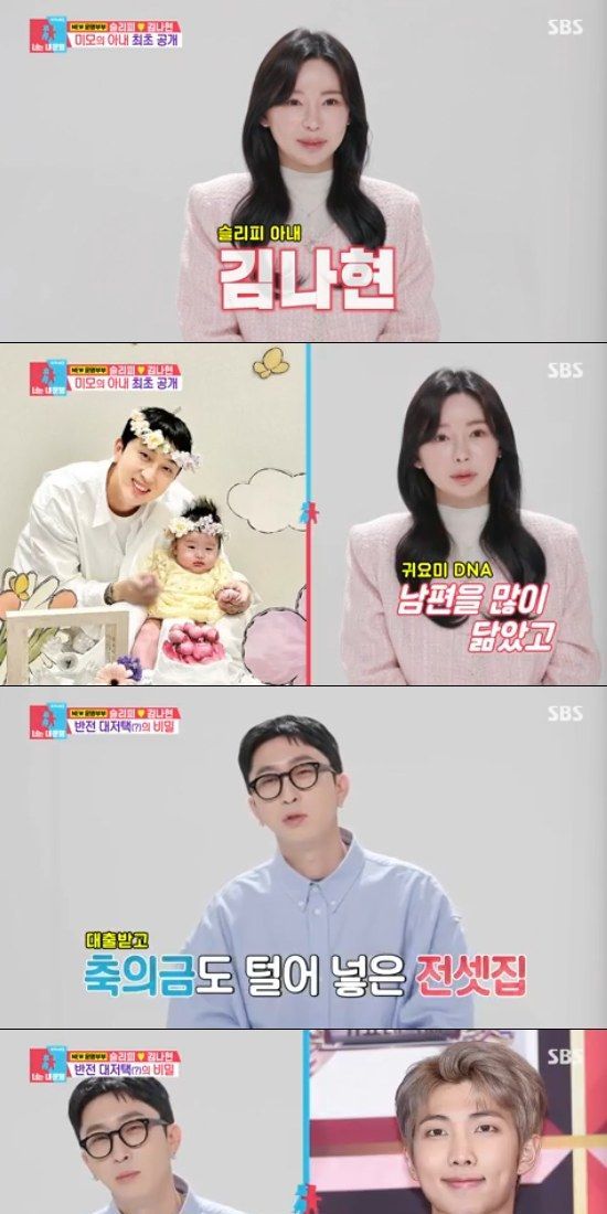 그리고 이날 여배우 같은 8살 연하의 아내 김나현의 모습이 공개됐다. 슬리피는 아내가 등장하자 "아유 예쁘다. 너무 귀엽지 않습니까?"라면서 꿀 떨어지는 눈빛을 보냈다.