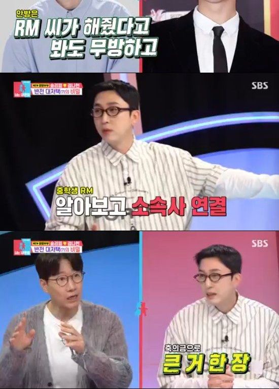이어 "김구라, 서장훈, 이현이 씨 이런 분들의 축의금으로 첫째 딸 방정도가 만들어졌다. 안방은 RM 씨가 해줬다고 봐도 무방하다"면서 "축의금을 큰 거 1장을 했다. 1000만원"이라고 말해 놀라움을 자아냈다.