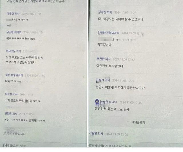 A씨는 “의료계 커뮤니티가 과도한 익명성을 빌미로 이런 상황이 벌어지고 있다”며 국회 국민동의 청원 게시판에 해결을 요구했다.