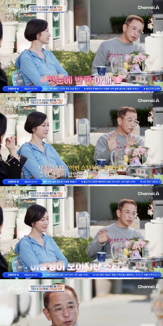 유용윤 씨는 "첫눈에 반했다. 그때는 어떤 스타일을 좋아한다는 건 없었는데 보이시한 스타일을 좋아했나보다. 지금은 되게 여성스럽다. 매일 같이 다녀도 소문이 안 났다. 그냥 선후배라고 생각한 거다. 이제 소문을 내야겠다 싶어서 소식통들에게 얘기했다. 내가 몇 번 말한 애들이 와서 왜 자기에게 이야기 안 했냐고 하더라. 얘기하지 않았냐고 하니 농담인 줄 알았다고 했다"라며 당시 주위의 반응을 언급했다.