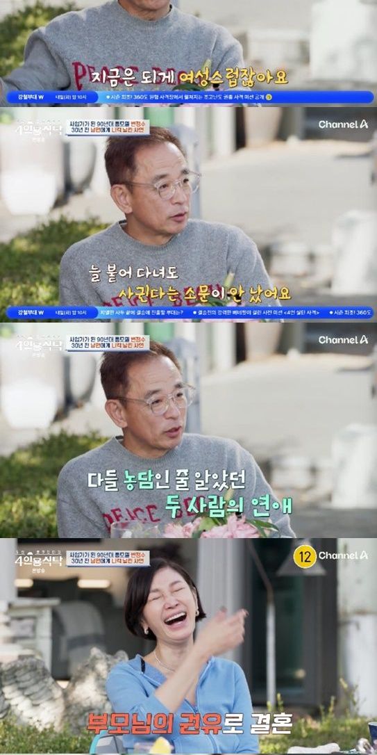 변정수는 7살 연상인 유용윤의 다정함에 반했다며 "다 챙겨줬다. 집에도 데려다주고 후진하는 모습이 반했다"라고 회상했다.