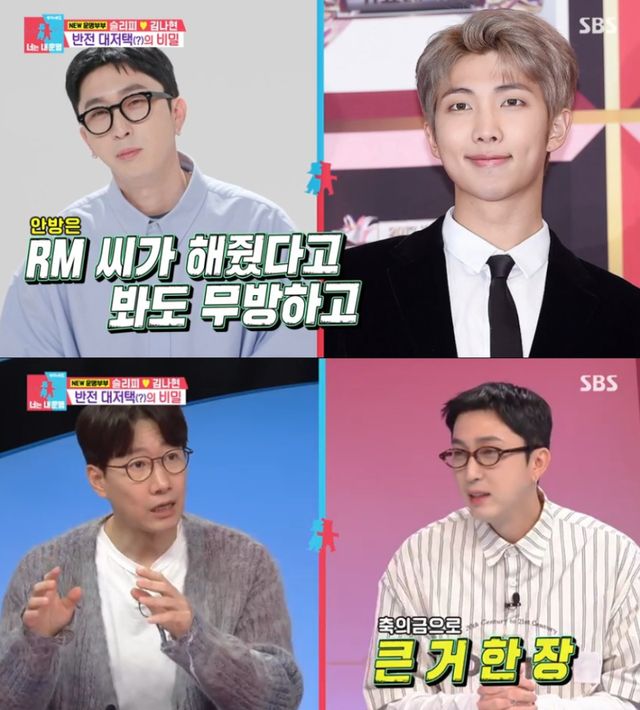 그러면서 슬리피는 “수많은 연예인들이 축의금을 해줬다”며 “안방의 경우 RM이 해줬다고 해도 무방하다”며 방탄소년단 멤버 RM을 언급했다. 그는 “중학생인 RM을 제가 처음 보고 번호를 받아서 하이브에 연결 해줬다. 축의금으로 큰 거 한 장을 해줬다”고 말했다. 이어 해당 금액이 1000만원이라고 밝혀 놀라움을 자아냈다.