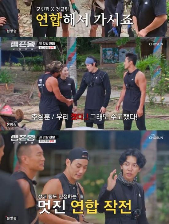 2일 방송된 TV조선 '생존왕 : 부족전쟁'(이하 '생존왕')에서는 피지컬팀(추성훈, 김동현, 박하얀)이 2라운드에서 탈락한 장면이 전파를 탔다.