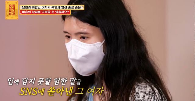 2일 방송된 KBS JOY '무엇이든 물어보살' 294회에는 남자친구와 바람난 여자의 폭언과 임신 중절 종용을 당하며 받은 마음의 상처와 기억에서 벗어나고 싶다는 사연자가 출연했다.