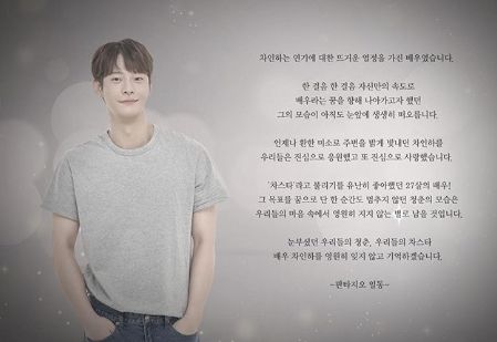 고인이 출연 중이던 사전제작 드라마 MBC '하자 있는 인간들'은 유가족의 의사에 따라 그의 분량 역시 편집 없이 그대로 방송됐다. '하자 있는 인간들'에 함께 출연 중이던 배우 오연서는 자신의 인스타그램에 “춥다, 그치? 조심해서 가. 우리 오빠 해줘서 너무 고마워”라는 추모 글을 남겨 먹먹함을 더했다.