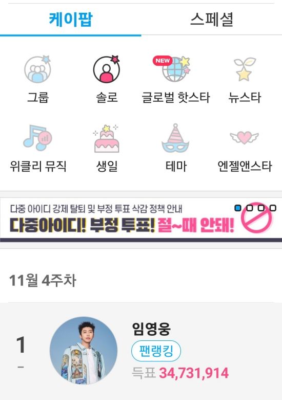 최근 '팬앤스타'에 따르면, 임영웅은 11월 4주 차 솔로가수 인기 랭킹 투표에서 1위에 등극했다.