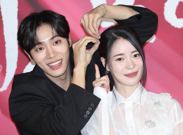 배우 추영우와 임지연(오른쪽)이 지난달 28일 서울 구로구 라마다 신도림에서 열린 JTBC 새 토일드라마 ‘옥씨부인전’(극본 박지숙/연출 진혁) 제작발표회에 참석해 포즈를 취하고 있다. ‘옥씨부인전’은 이름도, 신분도, 남편도 모든 것이 가짜였던 외지부 옥태영(임지연 분)과 그녀를 지키기 위해 목숨까지 걸었던 예인 천승휘(추영우 분)의 치열한 생존 사기극을 그린 드라마이다 / 뉴스1