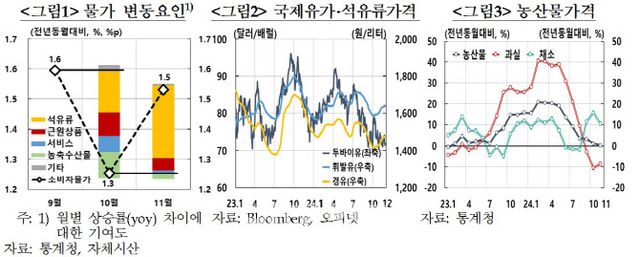 이어 “향후 물가전망 경로는 환율과 유가의 추이, 내수 흐름, 공공요금 조정 등에 영향받을 것으로 예상되며, 연말 연초 기업 가격 조정의 물가 파급효과에도 유의할 필요가 있다”고 했다.