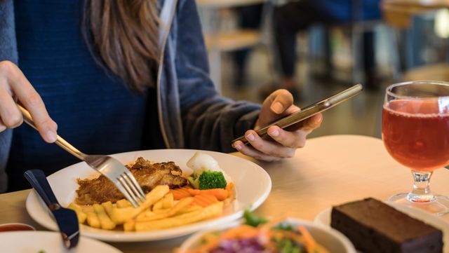 식사 중 스마트폰을 사용하면 소화불량과 체중 증가를 유발할 수 있어 주의가 필요하다. 식사에 집중하지 못해 과식이나 불규칙한 식습관을 초래할 수 있다.