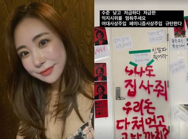 이에 앞서 지난달 29일 김성은은 "수준 낮고 저급하디 저급한 억지 시위를 멈춰달라. 여대 사상주입 페미니즘사상주입 규탄한다"는 글을 남기면서 동덕여대 학생들의 시위를 비판했다. 그가 공개한 사진 속에는 동덕여대 학생들의 시위 흔적이 담겼다. '나도 집 사줘. 우리 돈 다 먹고 공학까지?' 등의 글씨가 문 위에 쓰여 있다.