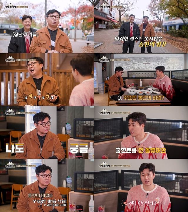 한편, 김종민은 “내 목표는 ‘꾸준히 오래 하자’이다. 어느 프로그램을 하더라도 오래 하는 것이 우선 목표다”라면서, “오래 하기 위해 출연료를 포함해 포기할 수 있는 부분은 과감히 내려놓기도 했다”며 꾸준한 방송 활동의 비결을 밝혔다. 이를 지켜보던 임원희는 “혹시 그럼 출연료를 깎은 적도 있냐”며 궁금증을 나타냈고, 김종민은 “깎지는 않았다. 다만 출연료 인상을 먼저 요청하지 않았다”는 고백으로 주위를 폭소케 했다. 이에 임원희는 “욕심 부리지 않는 모습이 보기 좋다. 앞으로의 활동도 응원한다”며 엄지를 치켜세워 훈훈한 분위기를 자아냈다.