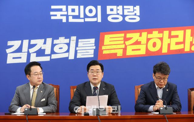 진성준 민주당 정책위의장은 3일 오전 국회에서 열린 원내대책회의에서 “내일 오전 10시 30분에 ‘상법 개정을 어떻게 할 것인가’를 주제로 당 정책위원회와 대한민국 주식 활성화 태스크포스(TF) 공동 주관으로 민주당의 2번째 정책 토론회가 열린다”면서 “이재명 대표가 직접 좌장을 맡는다”고 말했다.