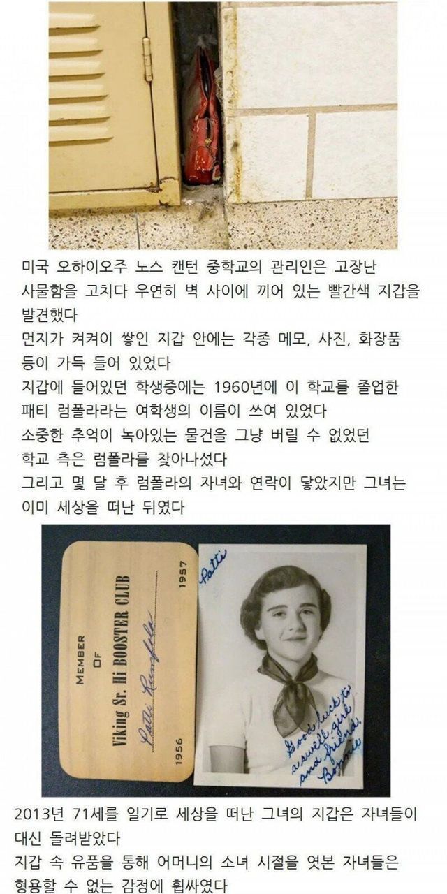 학교에서 발견된 60년 묵은 빨간 지갑..