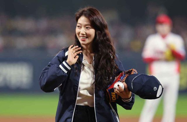 지난 10월 28일 오후 광주 기아챔피언스필드에서 열린 프로야구 '2024 신한 SOL 뱅크 KBO 포스트시즌' 한국시리즈 5차전 삼성 라이온즈와 KIA 타이거즈의 경기에 앞서 배우 박신혜가 시구를 마친 뒤 이동하고 있다. / 뉴스1
