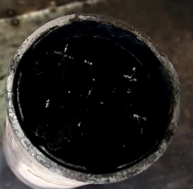 노후 경유차 매연저감장치(DPF) 필터 클리닝 전 상태. 방치하면 필터에 카본으로 막히면 출력 저하와 엔진 과열로 화재 위험도 증가한다. 사진=자동차시민연합