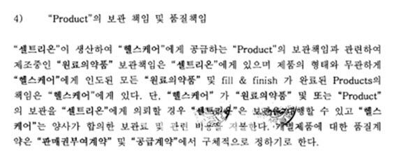 조사 결과 셀트리온은 바이오시밀러 의약품을 본격 개발하기 시작한 2008년 8월 계열사인 헬스케어에 셀트리온 제품에 대한 국내외 독점판매권을 부여하는 대신 헬스케어는 제품개발과정에서의 위험과 비용을 일부 부담하는 계약을 체결했다. 계약에 따르면 헬스케어는 셀트리온으로부터 바이오시밀러 제품을 매입해 자신의 책임 아래 보관하고 이를 셀트리온이 보관하는 경우 헬스케어가 셀트리온에 보관료를 지급하도록 했다. 하지만 셀트리온은 2009년 12월부터 헬스케어로부터 보관료를 받지 않기로 하고, 2012년 8월엔 해당 계약서에서 보관료 지급 규정을 삭제했다.